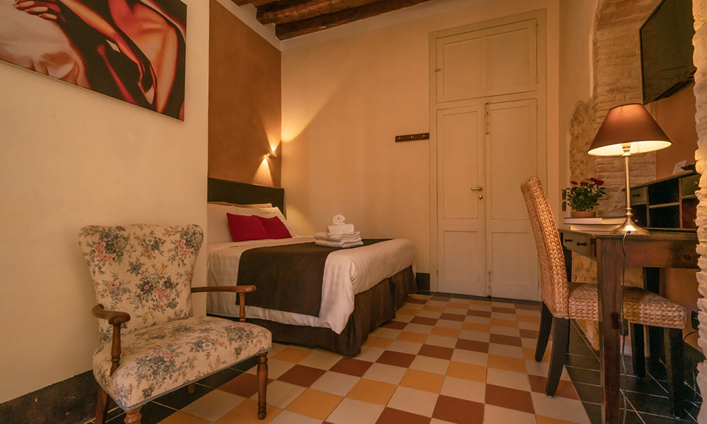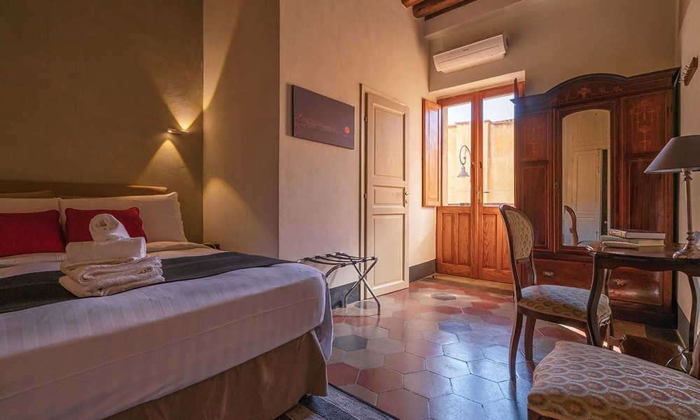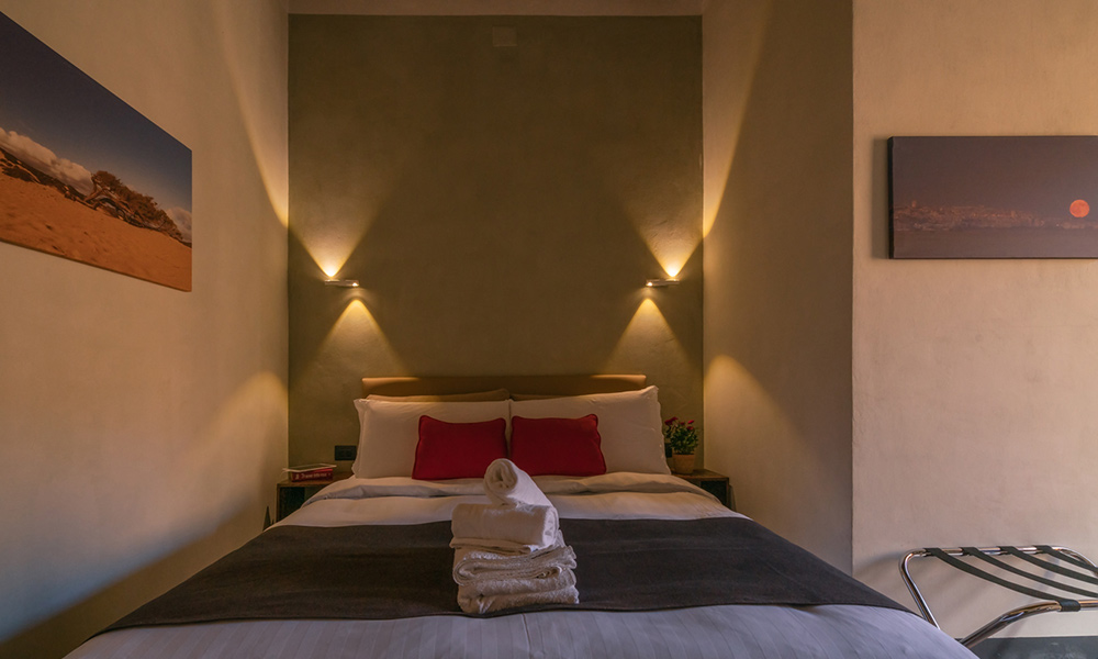 Le nostre camere, due matrimoniali e una doppia con letti singoli, tutte esposte a sud e luminosissime, sono: termo condizionate - dotate di bagno privato con bidet, ampia doccia, asciugacapelli e set di cortesia - piccolo balcone privato - TV a schermo piatto – cassaforte. La struttura è interamente coperta dalla connessione WiFi gratuita e inoltre, ogni camera possiede la possibilità di connessione internet via cavo.